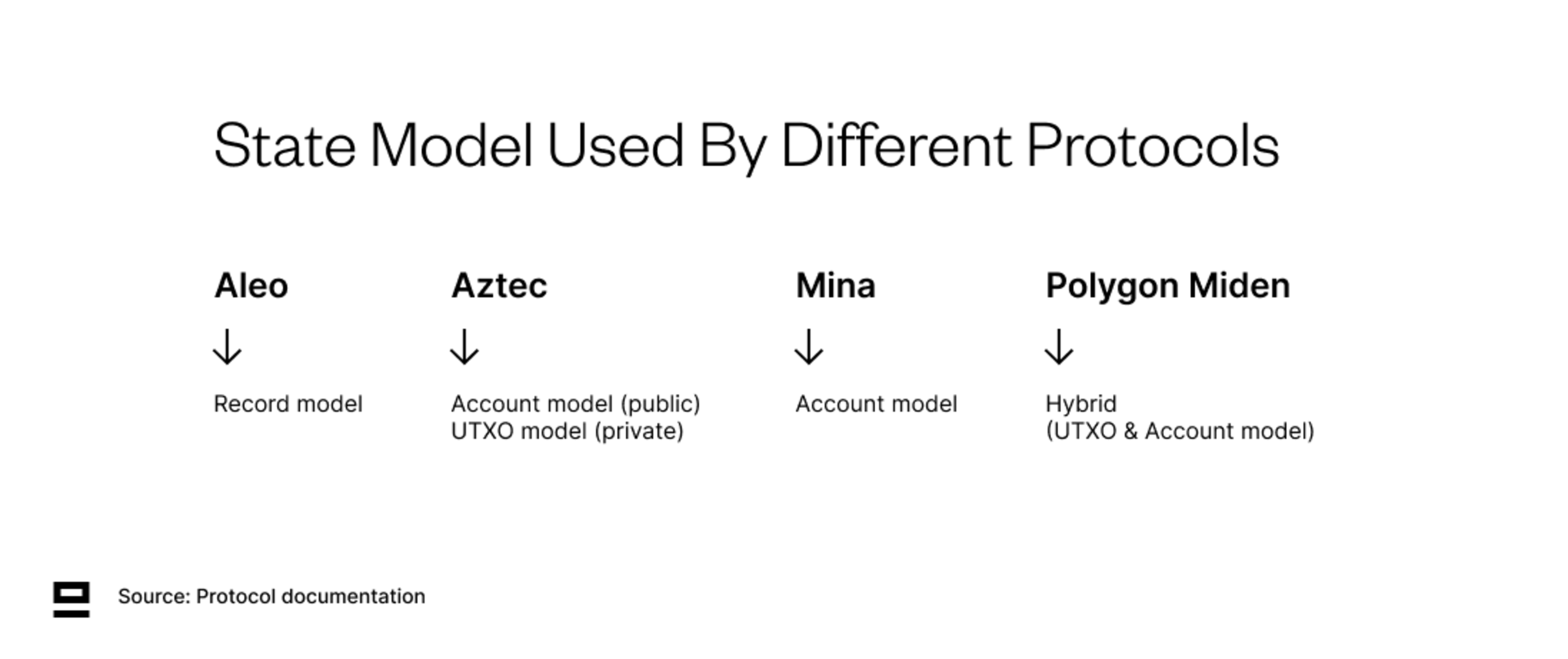 Finally, there is a big difference in timelines. While Aleo and Mina* are furthest along from the general-purpose privacy solutions with an expected mainnet launch later this year and early next year respectively, Polygon Miden and Aztec don’t even have a public testnet yet. This makes it difficult to compare solutions as a lot can change in a year, especially for the solutions that are still in the idea phase.